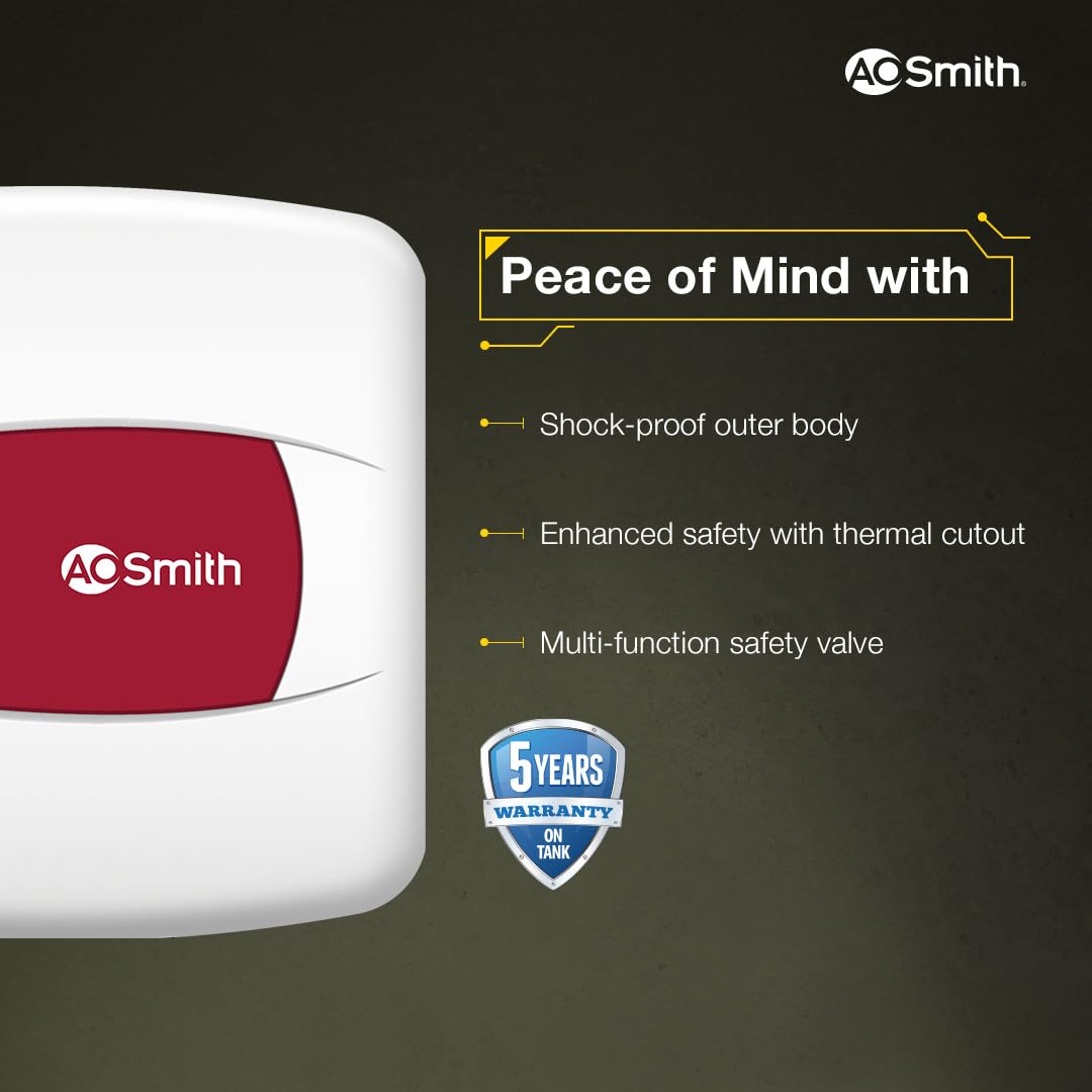 - LONG-LASTING WARRANTY COVERAGE: With a 5-year warranty by AO Smith on the inner tank, 2 years on the glass-coated heating element, and 2 years comprehensive by AO Smith, this AO Smith 10-litre water heater offers unparalleled after-sales support for peace of mind.